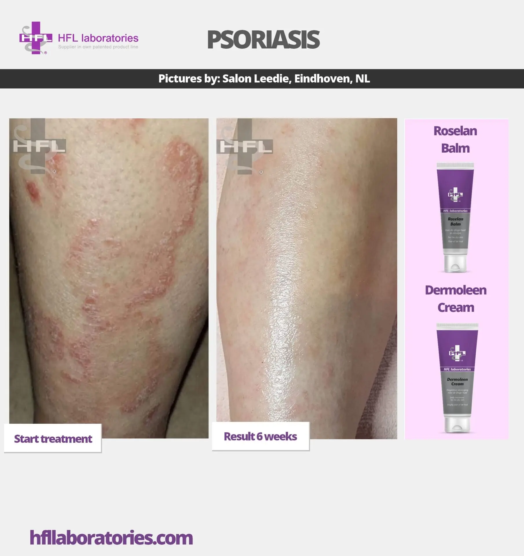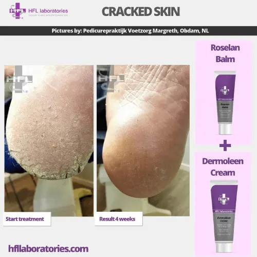 • Nahahaiguste korral, eriti probleemsete jalgade korral ning veelgi paremate tulemuste saavutamiseks on Dermoleen kreemi soovitatav kasutada koos HFL Bodygeeliga, mis kuulub probleemse naha baashoolduse hulka ja Roselan palsamiga, mis vastutab epidermise teise kihi eest.