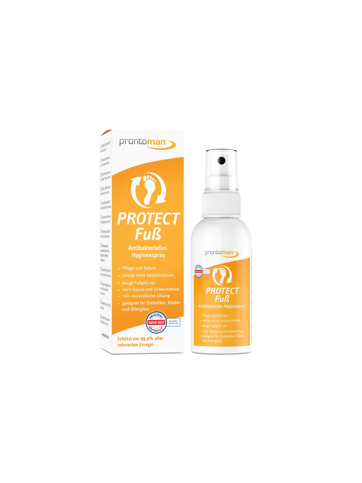 Prontoman Jalakaitse – минеральный антисептический спрей для профилактики грибка стоп и ногтей. Уничтожает 99,9% бактерий и грибков, не сушит кожу. Без спирта, подходит детям и диабетикам.